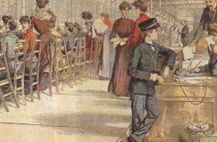 Seht Ihr sie sitzen am Klöppelkissen, die Wangen bleich und die Augen rot! Sie mühen sich ab für einen Bissen, Für einen Bissen schwarzes Brot! Großmutter hat sich die Augen erblindet, Sie wartet, bis sie der Tod befreit - Im stillen Gebet sie die Hände windet: Gott schütz' uns in der schweren Zeit. usw.